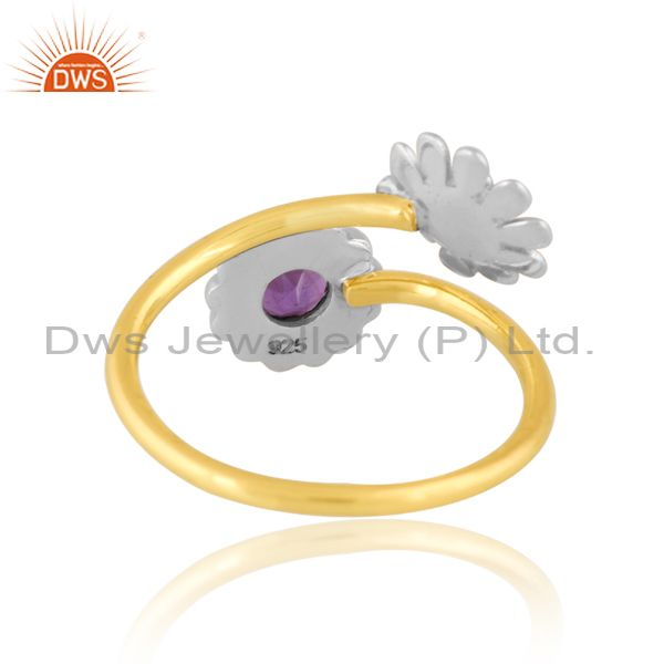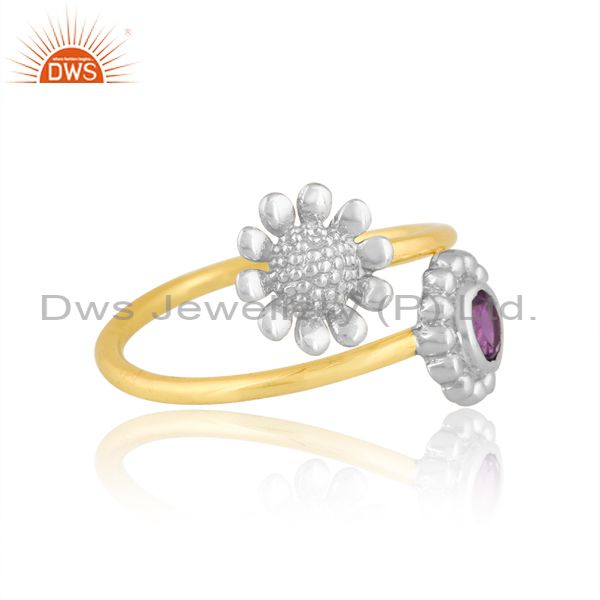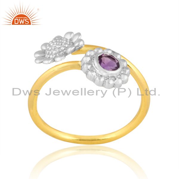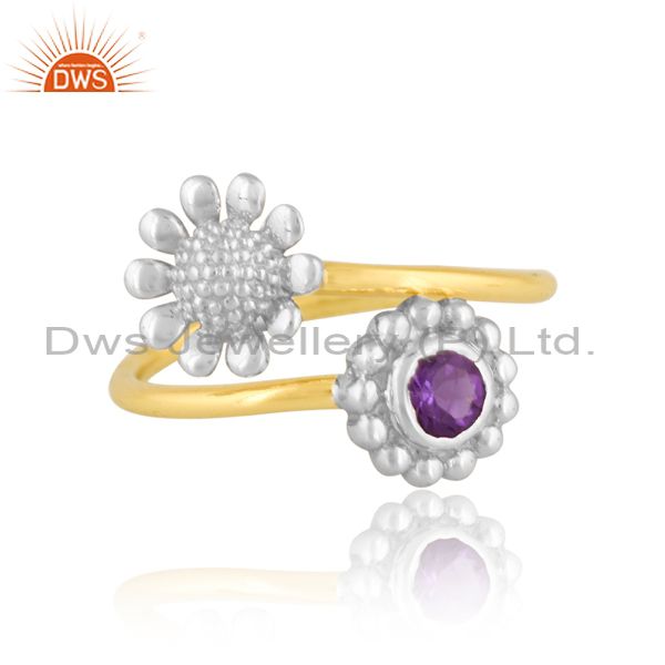 Sterling Silver Gold And White Ring With Amethyst Round Cut