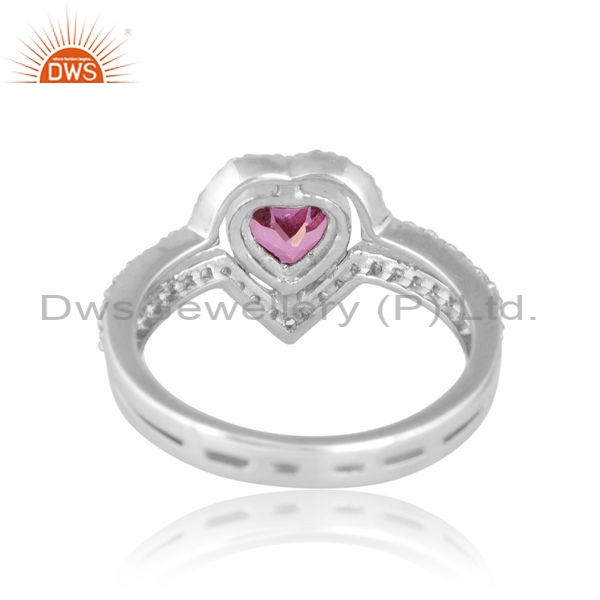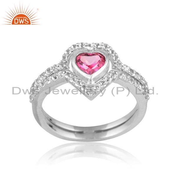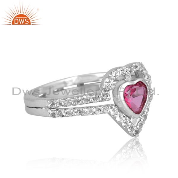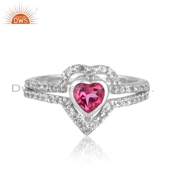 Sterling Silver Gold Heart Ring With Pink And White Topaz