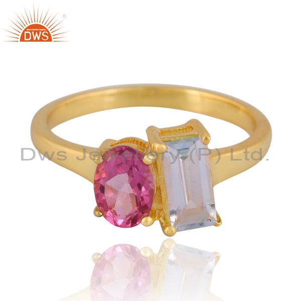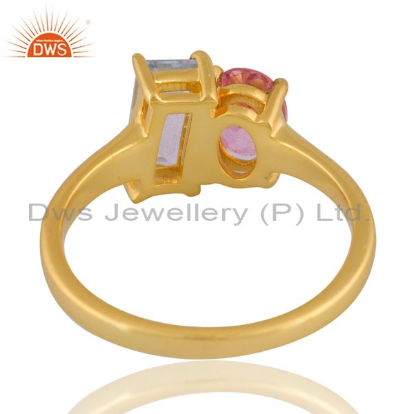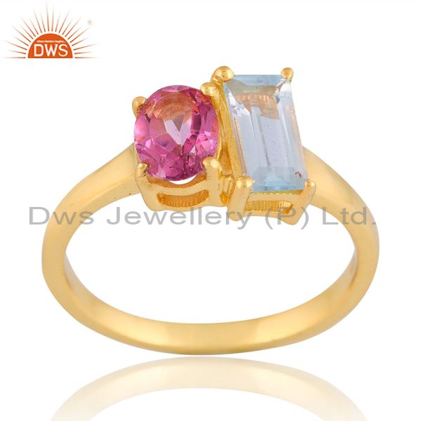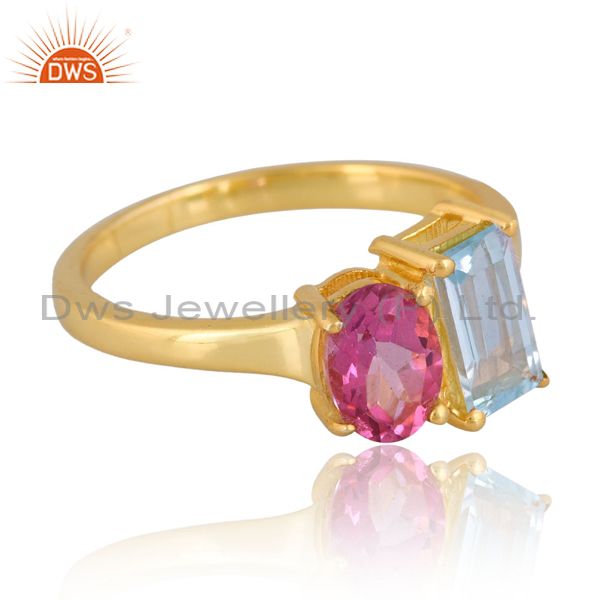 Sterling Silver Gold Ring With Blue And Pink Topaz