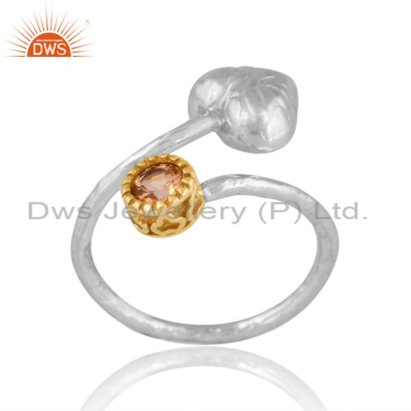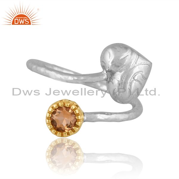 Sterling Silver Gold Ring With Citrine Round Cut