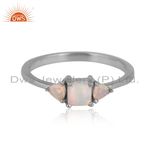 Sterling Silver Gold Ring With Ethiopian Opal Cut