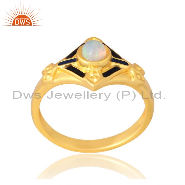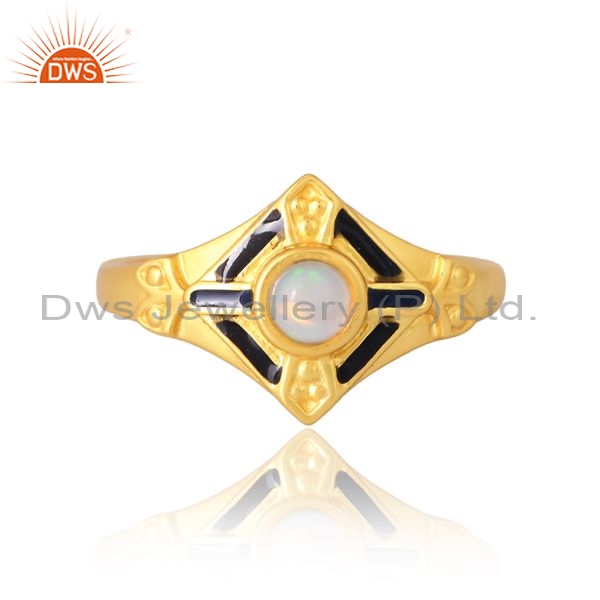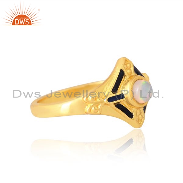 Sterling Silver Gold Ring With Ethiopian Opal Round Cut
