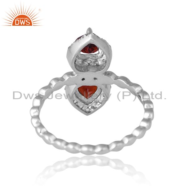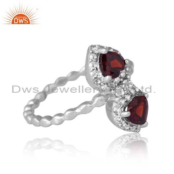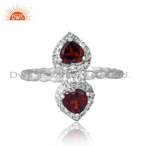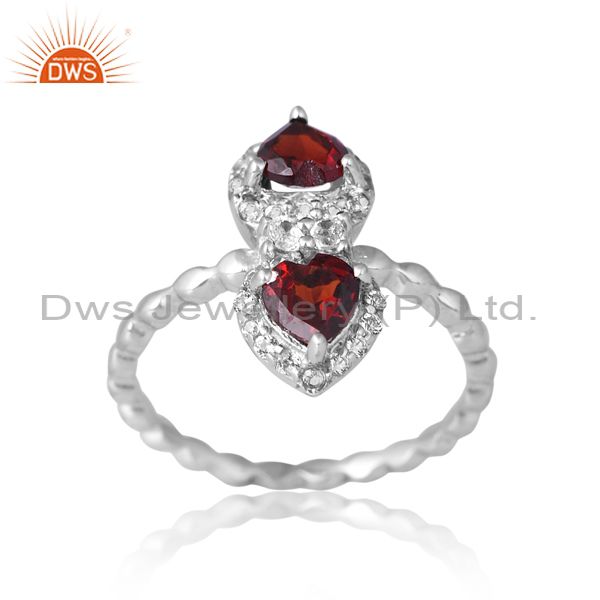 Sterling Silver Gold Ring With Garnet And White Topaz
