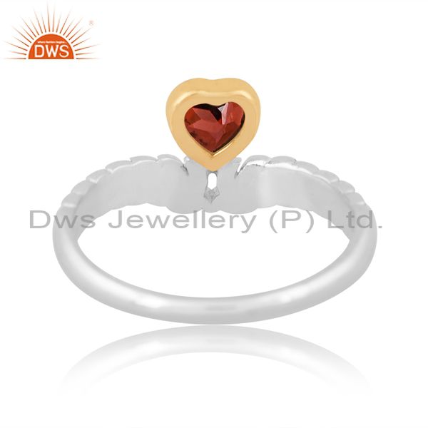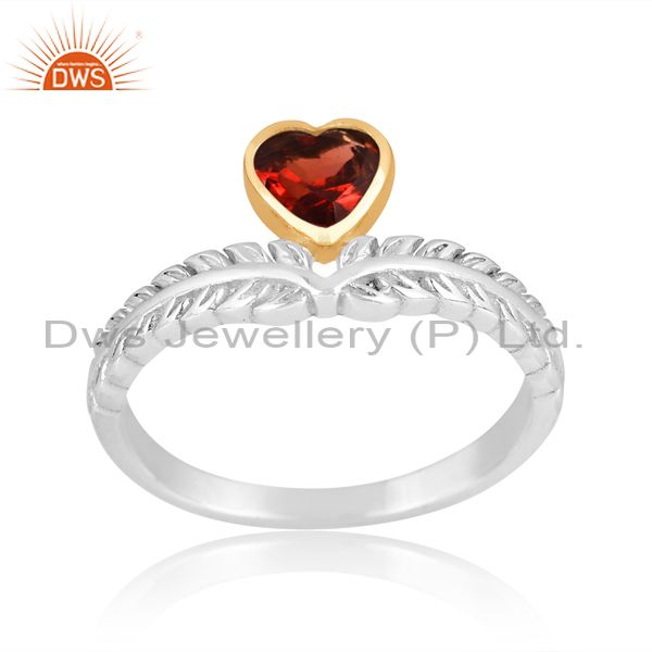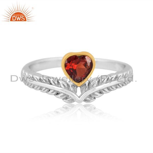 Sterling Silver Gold Ring With Garnet Heart Cut Stone