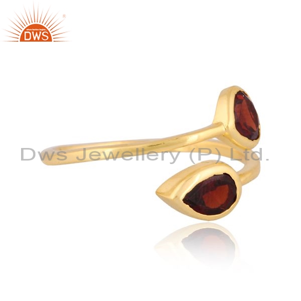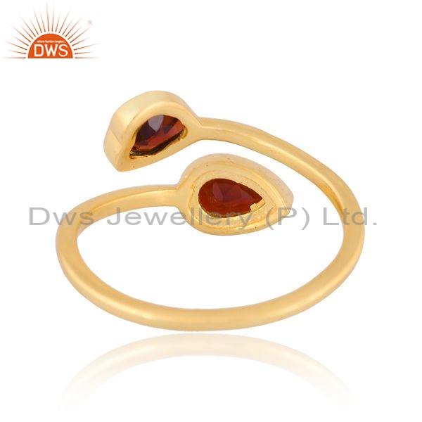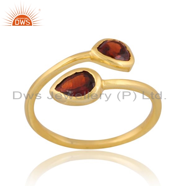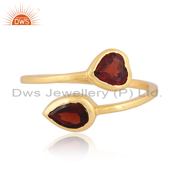 Sterling Silver Gold Ring With Garnet In Heart And Pear Cut