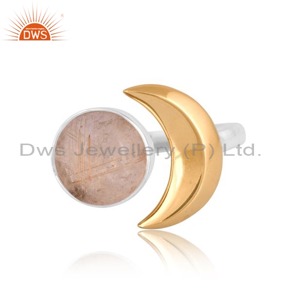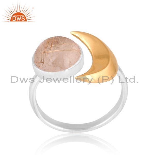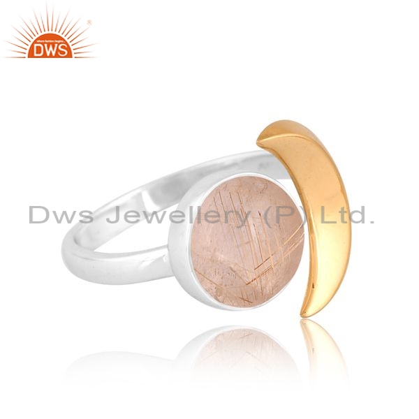 Sterling Silver Gold Ring With Golden Rutile Cabushion Round