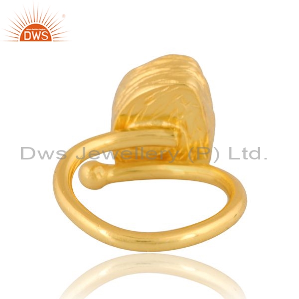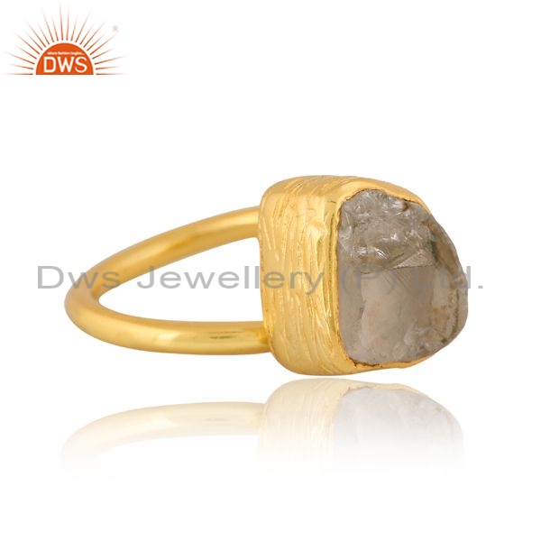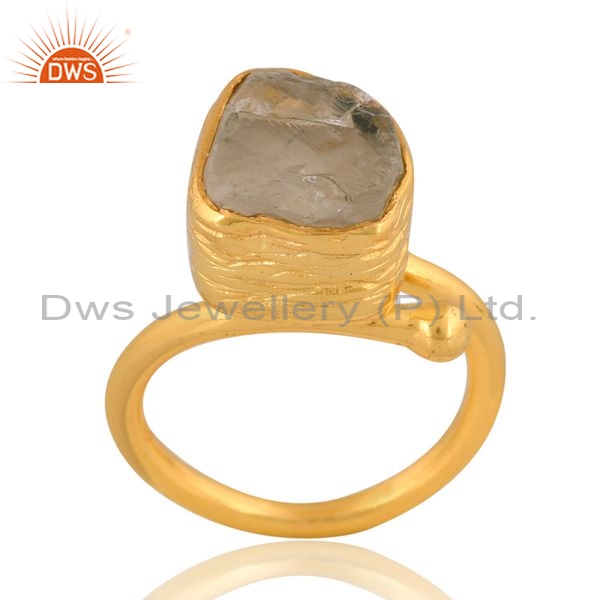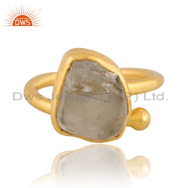 Sterling Silver Gold Ring With Green Amethyst Rough Stone