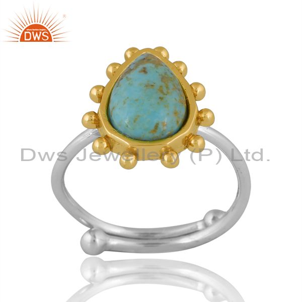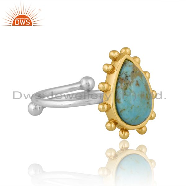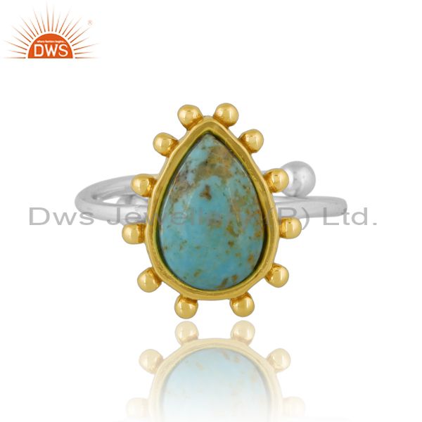 Sterling Silver Gold Ring With Kingman Turquoise Pear Cut