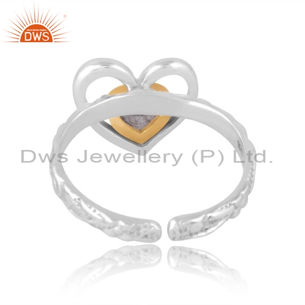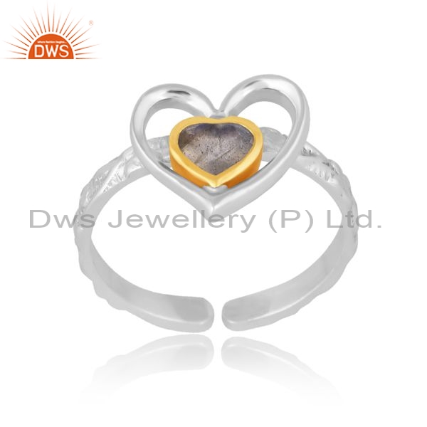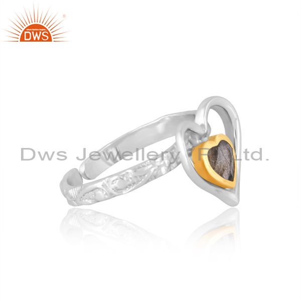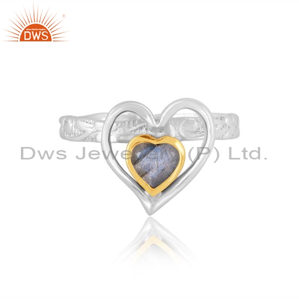 Sterling Silver Gold Ring With Labradorite Heart Cut