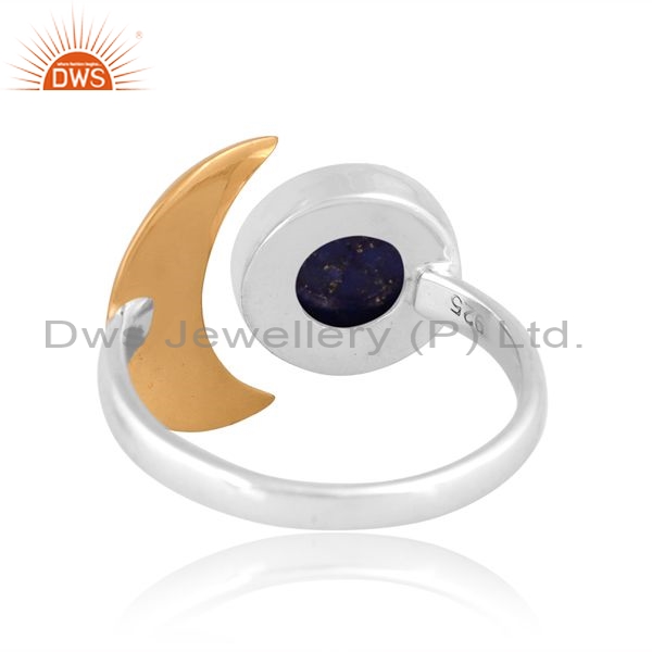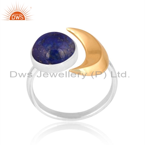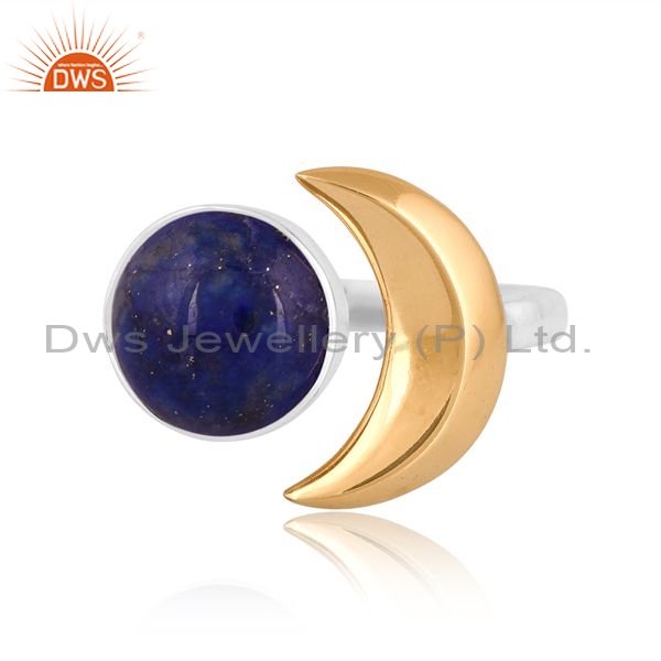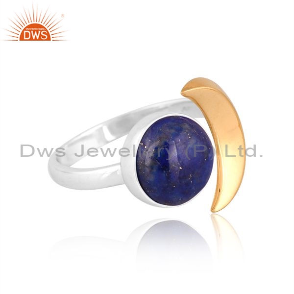 Sterling Silver Gold Ring With Lapis Cabushion Round Stone