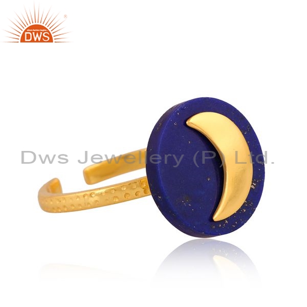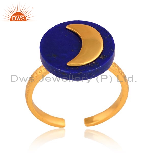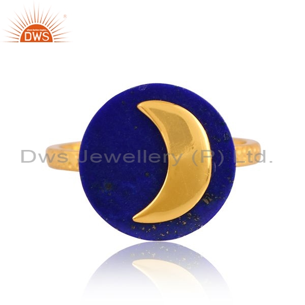 Sterling Silver Gold Ring With Lapis Coin Around Cut Stone