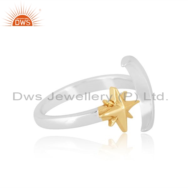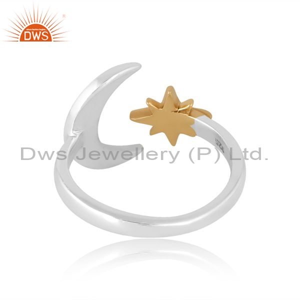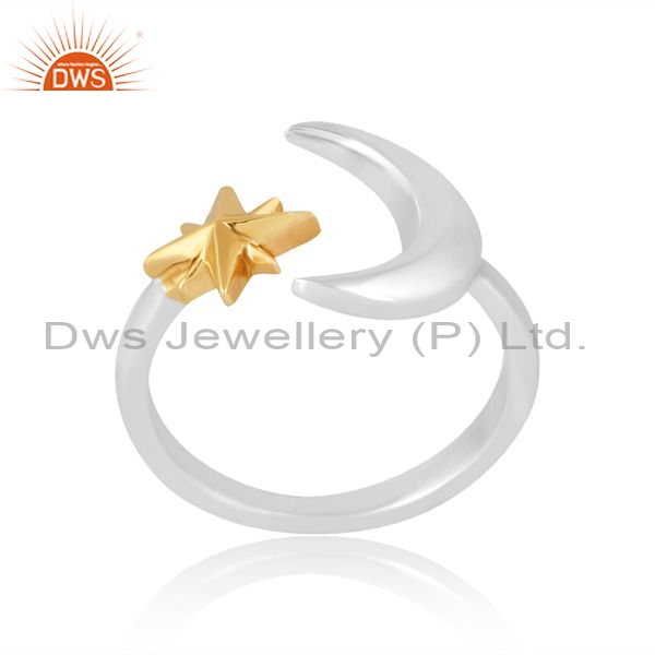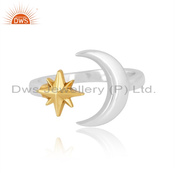 Sterling Silver Gold Ring With Moon And Star Pattern