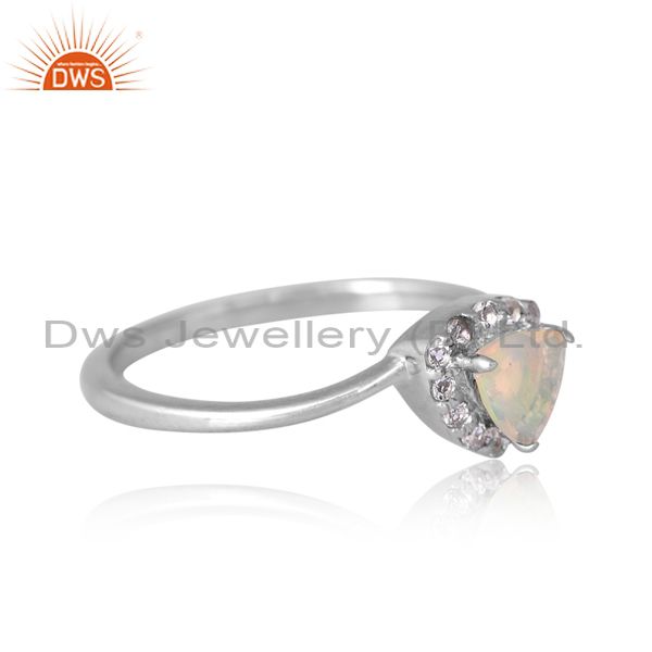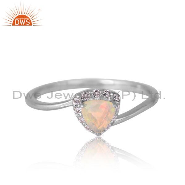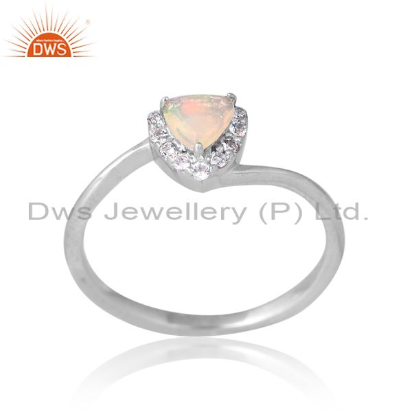 Sterling Silver Gold Ring With Opal And White Topaz Round