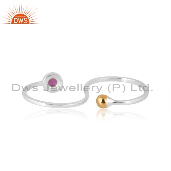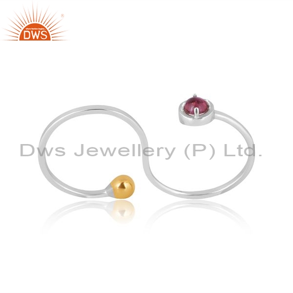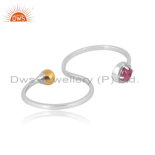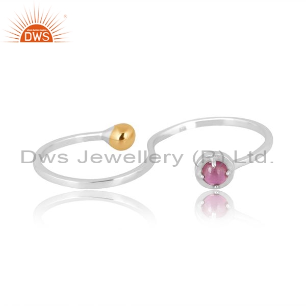 Sterling Silver Gold Ring With Pink Tourmaline Stone