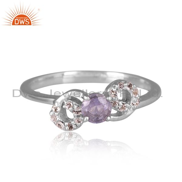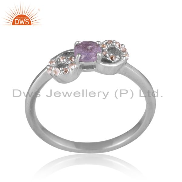 Sterling Silver Gold Ring With Tanzanite & White Topaz