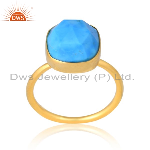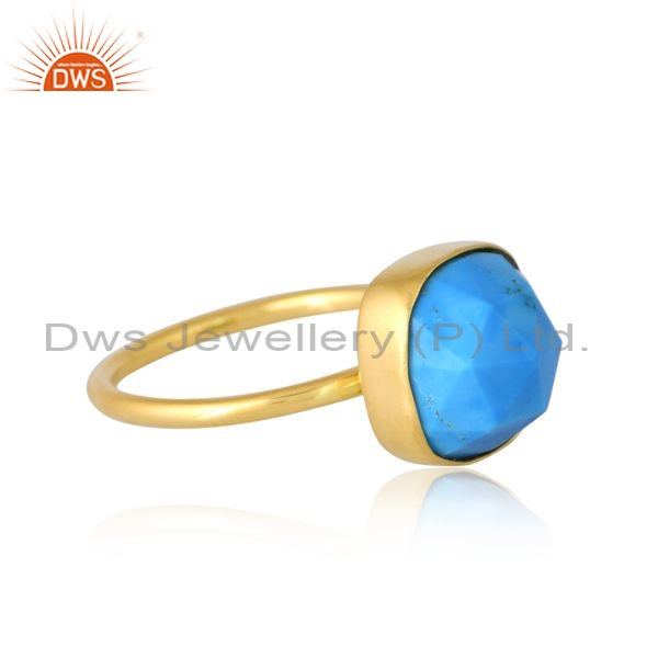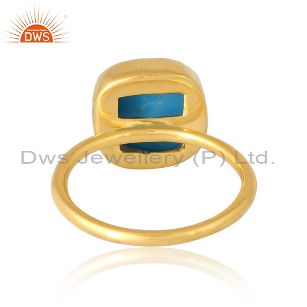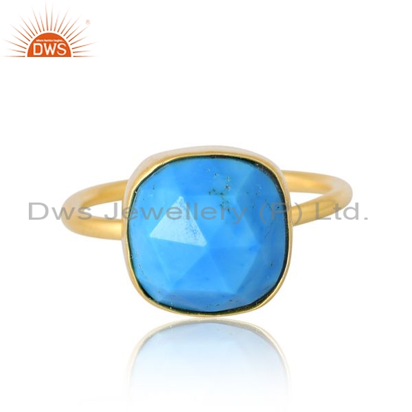 Sterling Silver Gold Ring With Turquoise Checker Cushion Cut