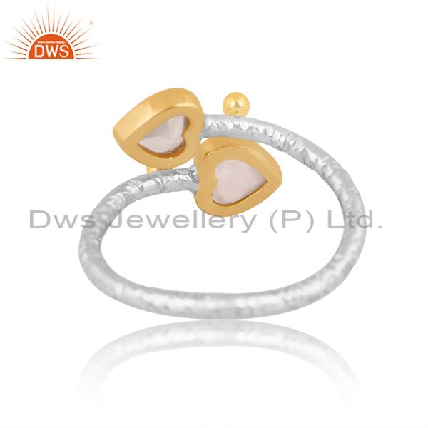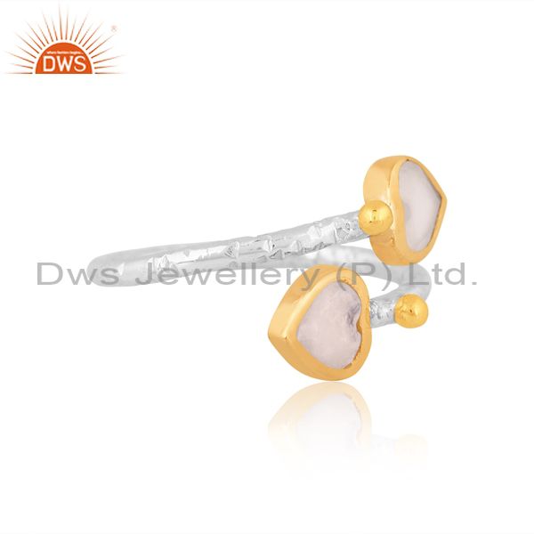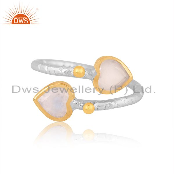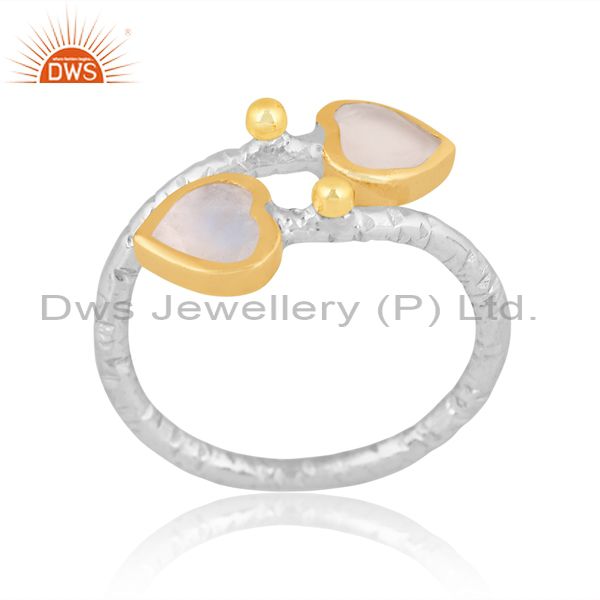 Sterling Silver Gold Ring With White And Rainbow Moonstone