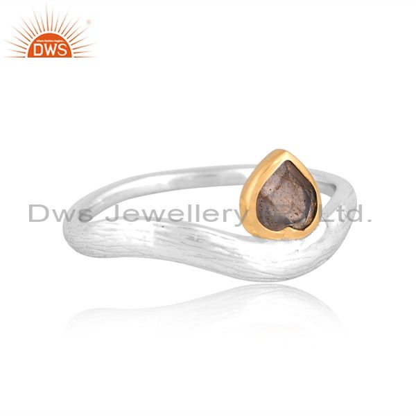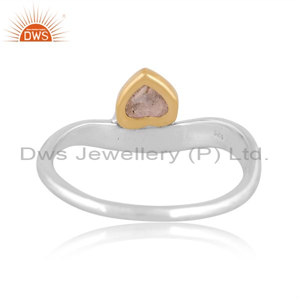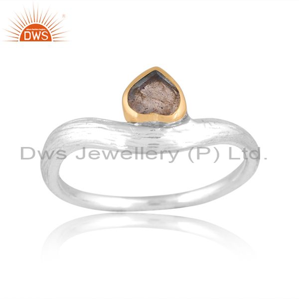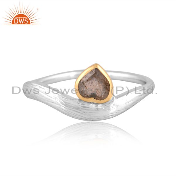 Sterling Silver Gold White Ring With Labrodorite Heart Stone