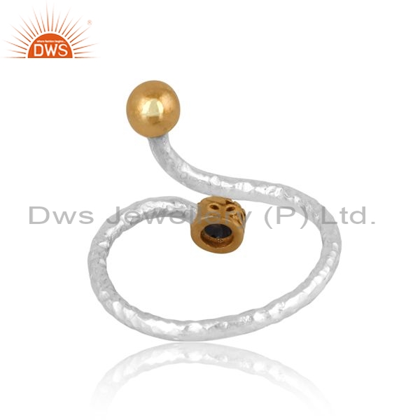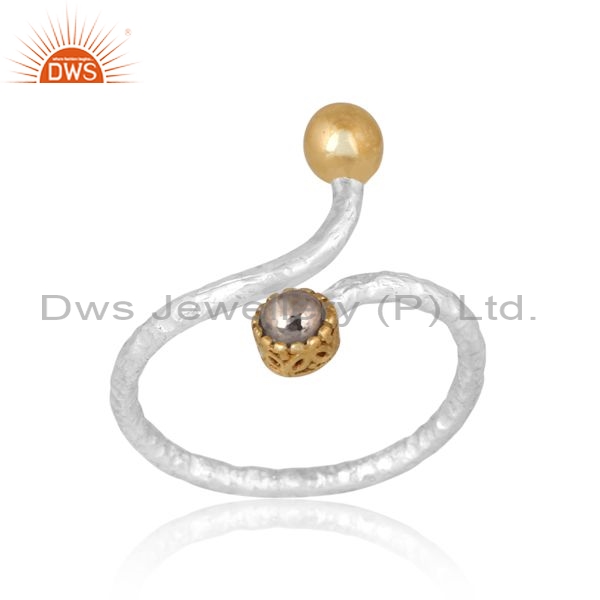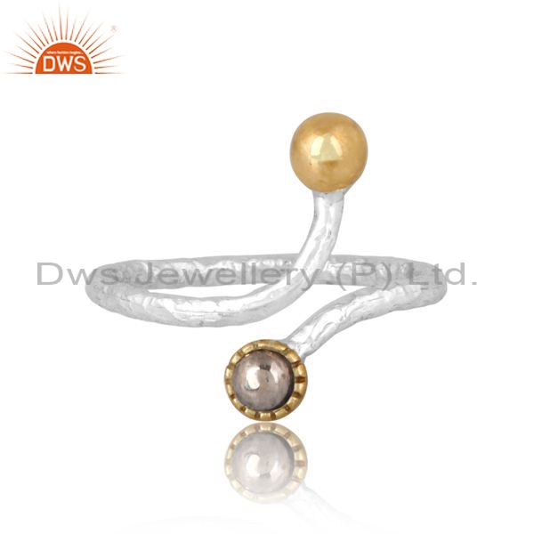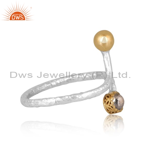 Sterling Silver Gold White Ring With Pyrite Round Cut
