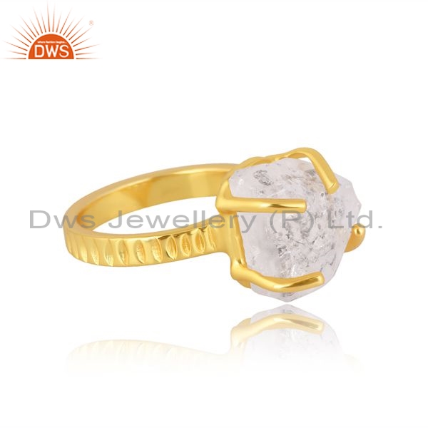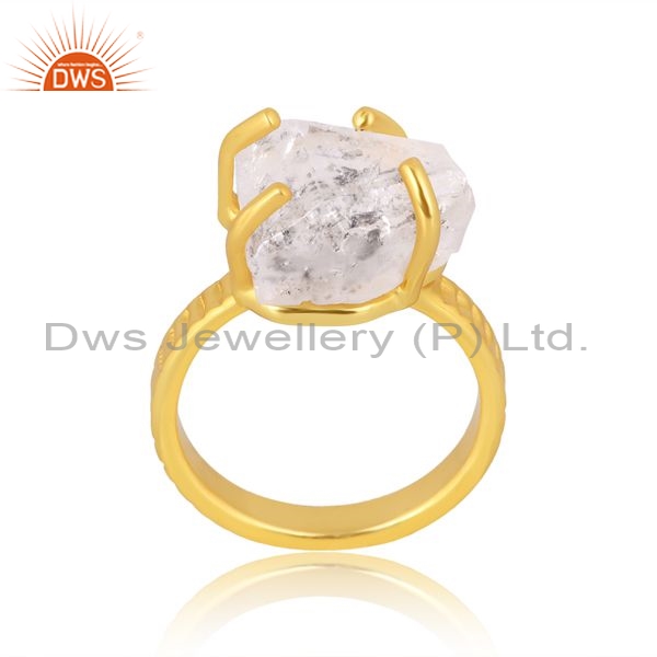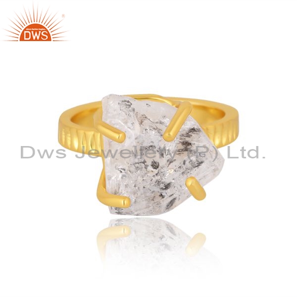 Sterling Silver Gold Wire Herkimer Diamond Stone Ring