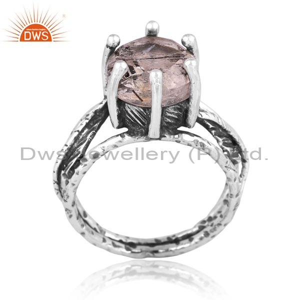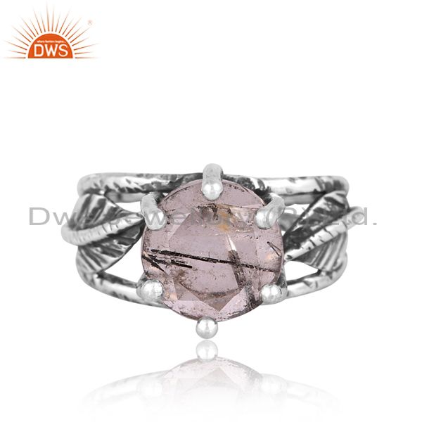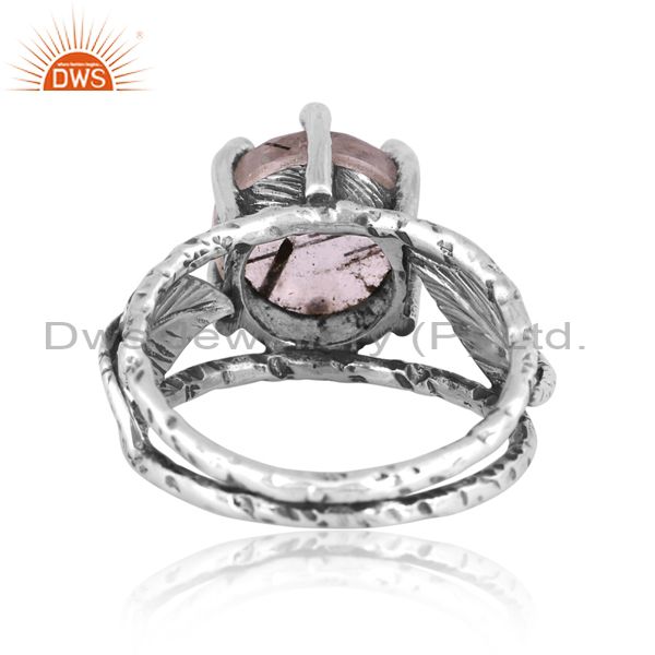 Sterling Silver Hammered Wire Ring With Black Rutile Stone