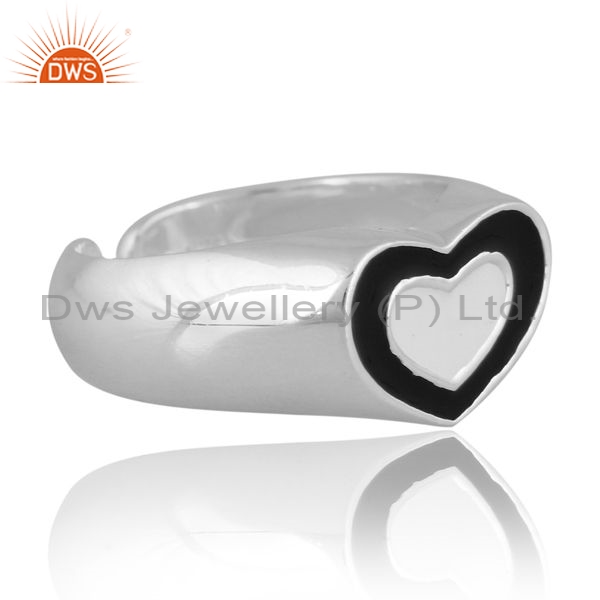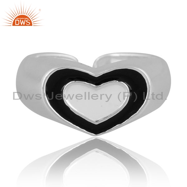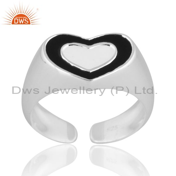 Sterling Silver Heart Ring With Black Enamel