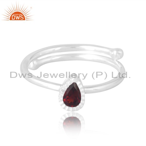 Sterling Silver Hot Garnet Pear Cut Silver Ring For Women