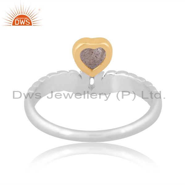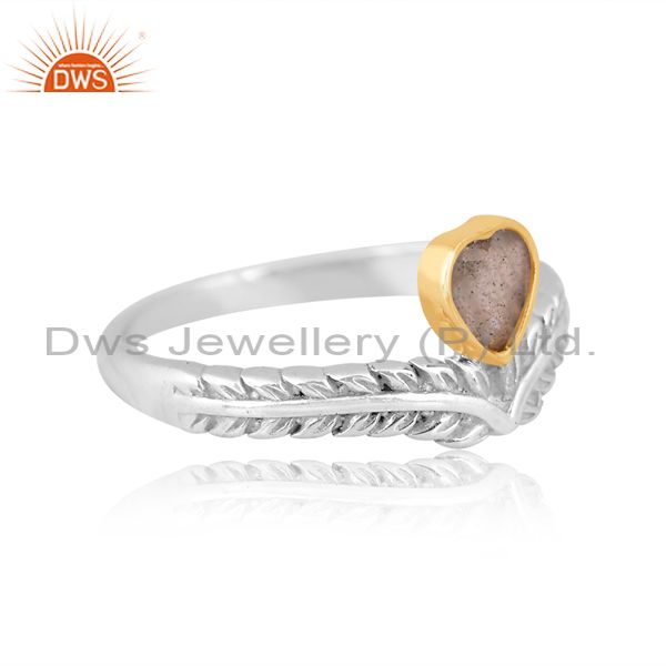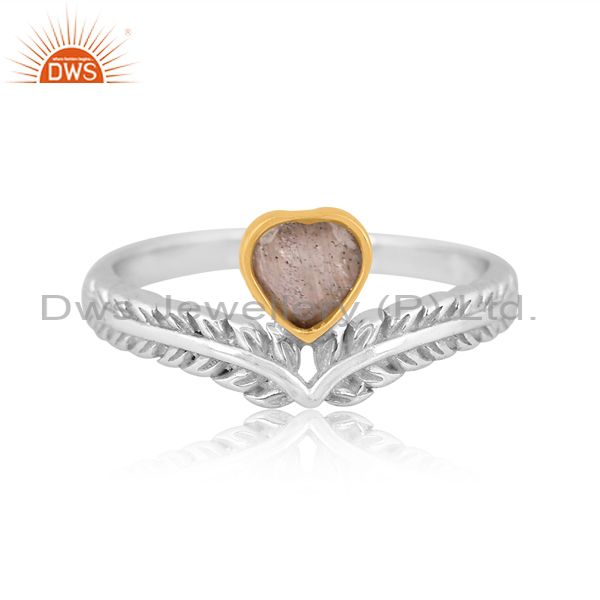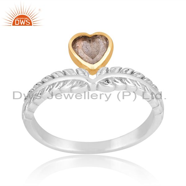 Sterling Silver Leaf Ring With Labrodorite Heart Cut Stone