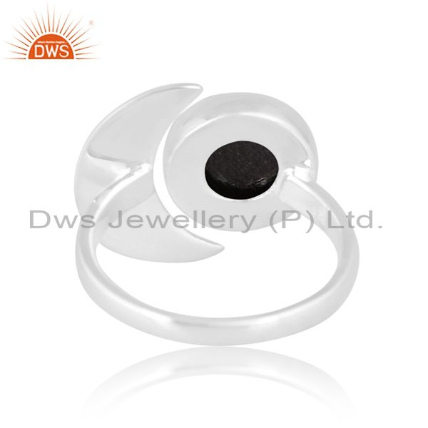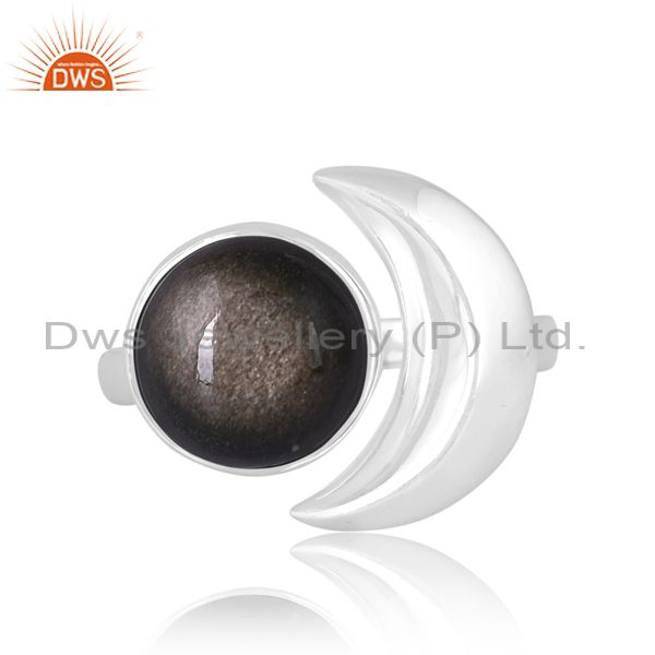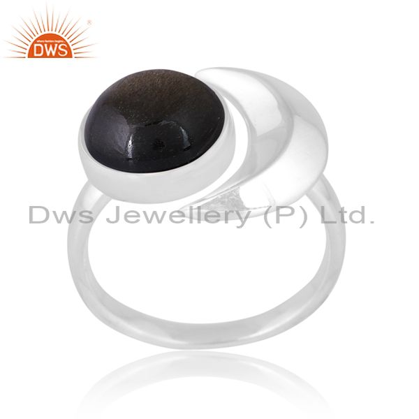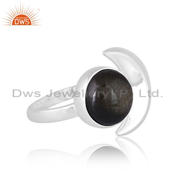 Sterling Silver Moon Ring With Gold Sheen Obsidian