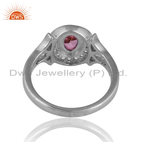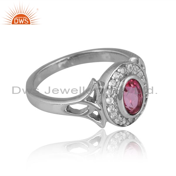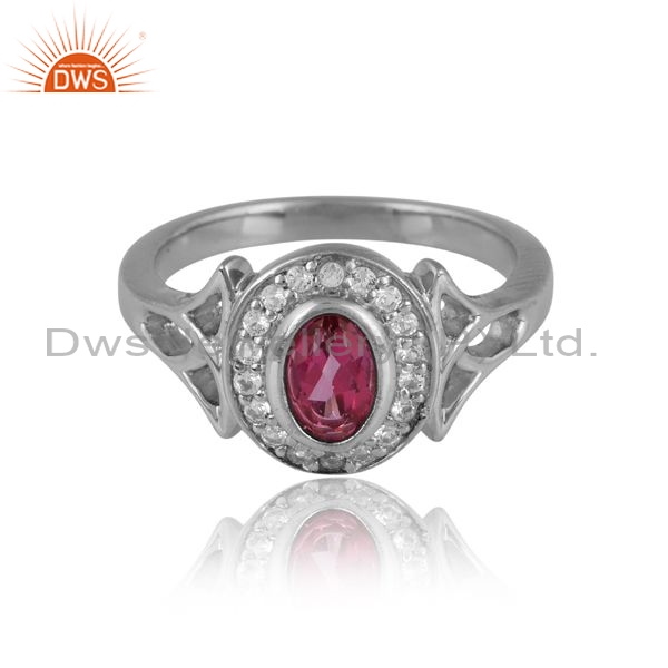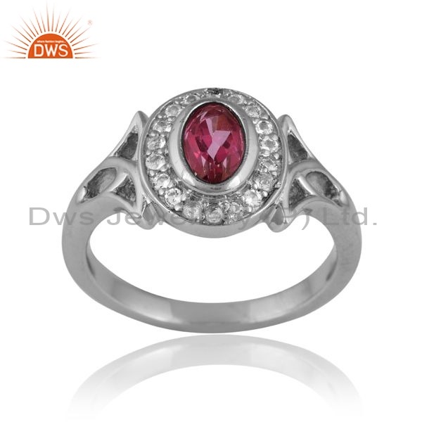 Sterling Silver Oval Ring With Pink And White Topaz
