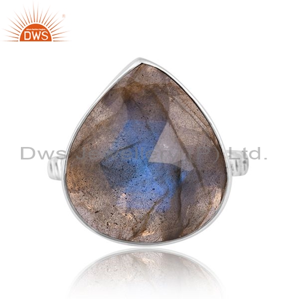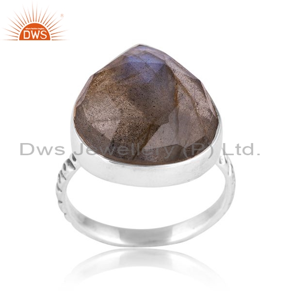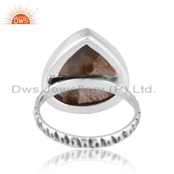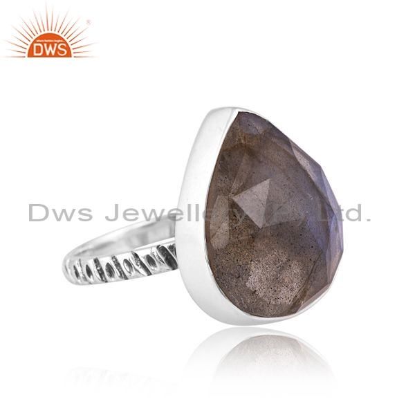 Sterling Silver Oxide Ring With Labradorite Heart Cut