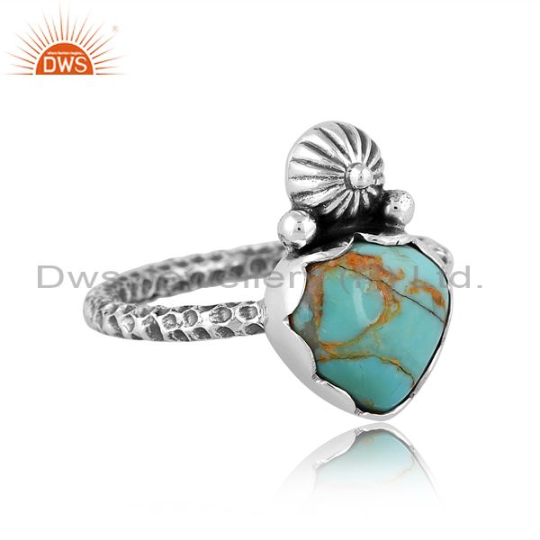 Sterling Silver Oxidized Kingman Turquoise Cabochon Ring