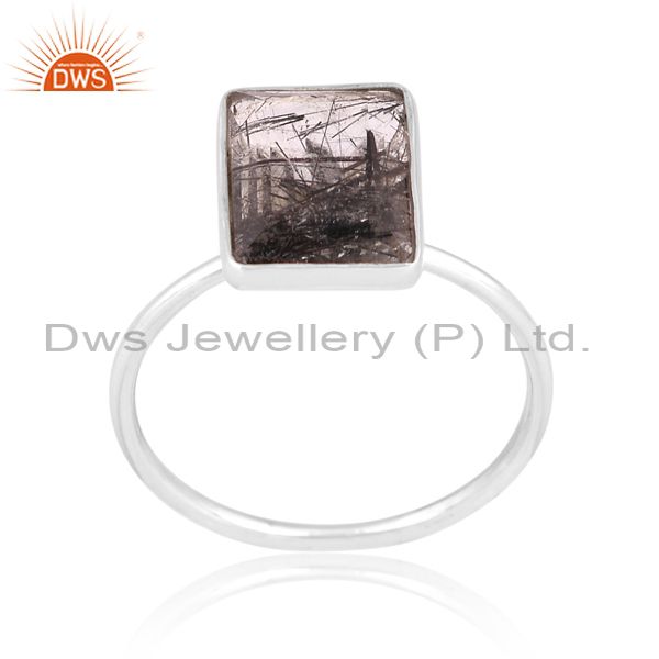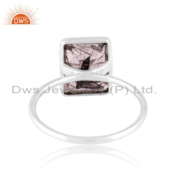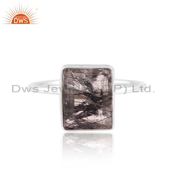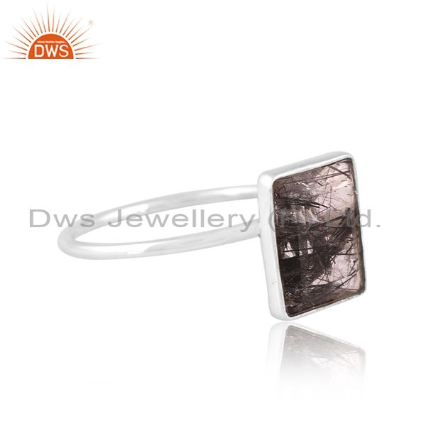 Sterling Silver Oxidized Ring With Black Rutile Cut Baguette