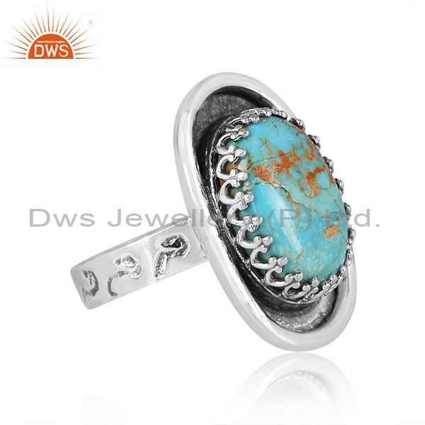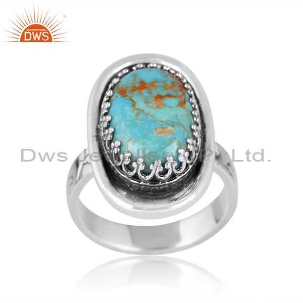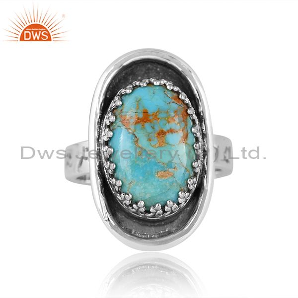 Sterling Silver Oxidized Ring With Kingman Turquoise Stone