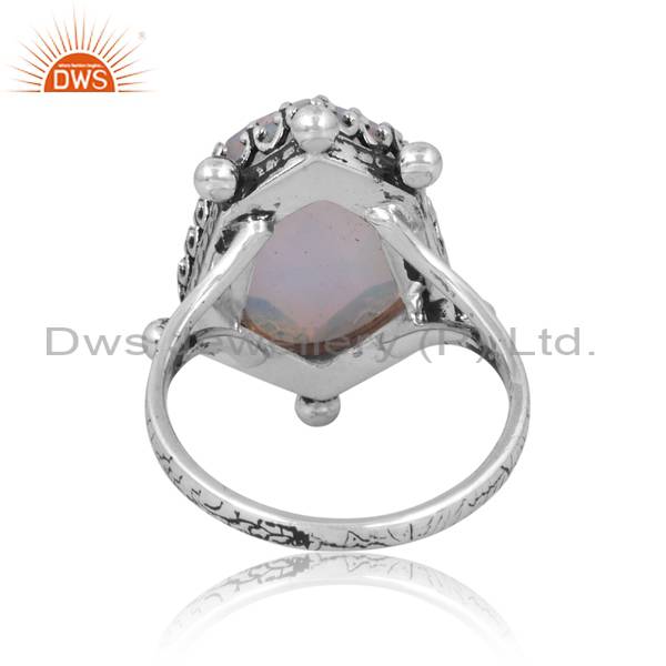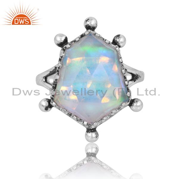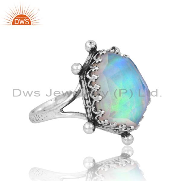 Sterling Silver Oxodized Ring With Unshape Aurora Opal White