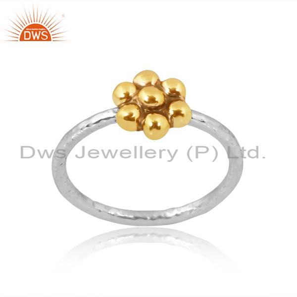 Sterling Silver Pita Wire Finger Ring With Brass Flower