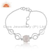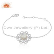 Sterling Silver Rainbow Moonstone Floral Design Ring For Womens Wedding
