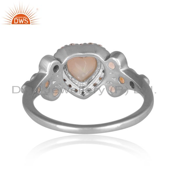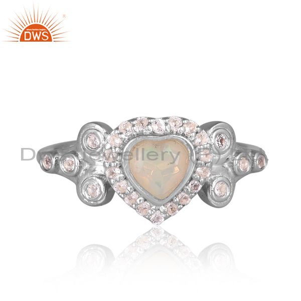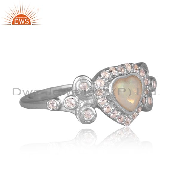 Sterling Silver Ring Ethiopian Opal & White Topaz Studded