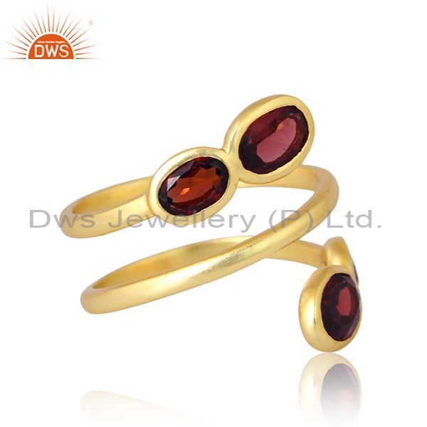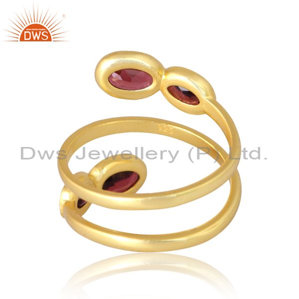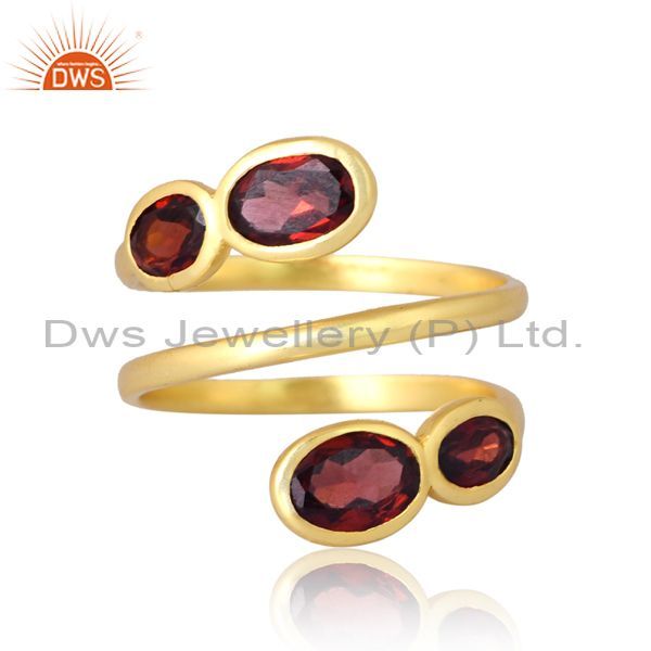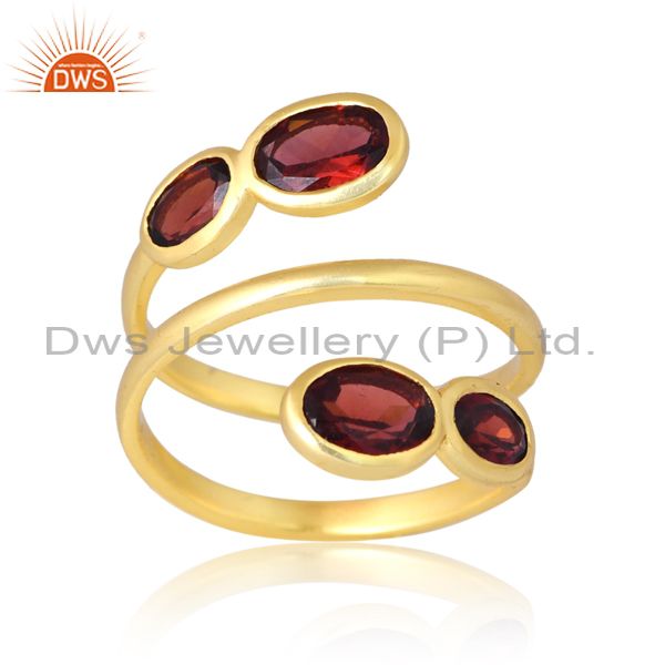 Sterling Silver Ring In Gold With Garnet Cut Stones