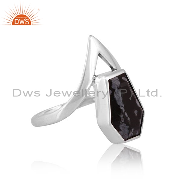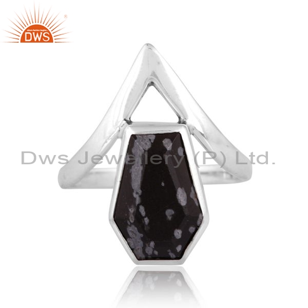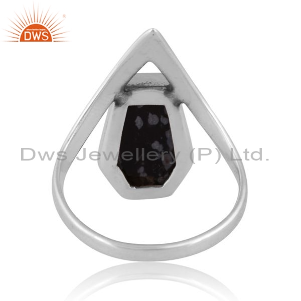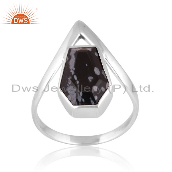 Sterling Silver Ring With A Snowflake Obsidian Coffin Cut