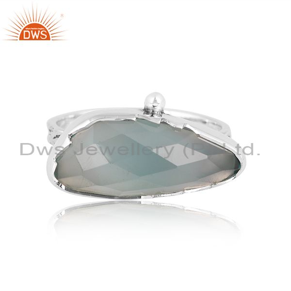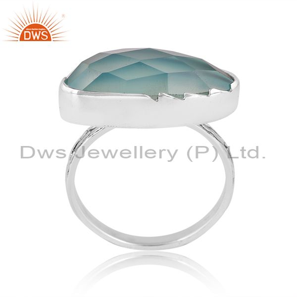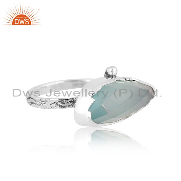 Sterling Silver Ring With Aqua Chalcedony Unshaped Stone