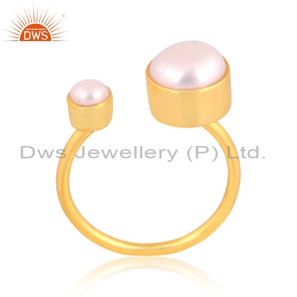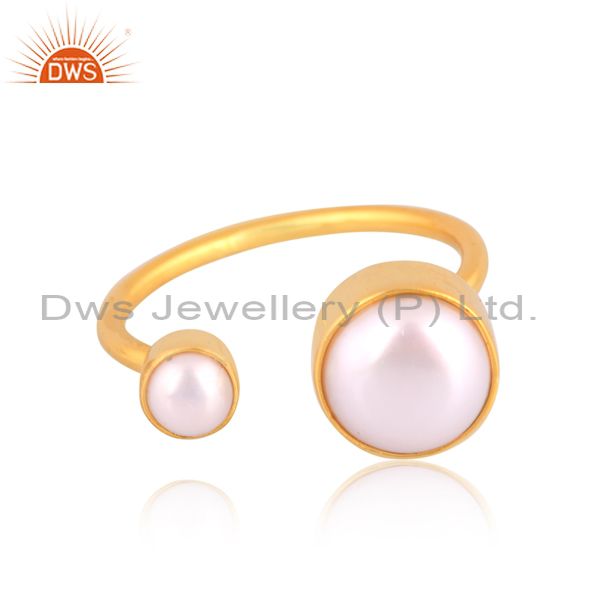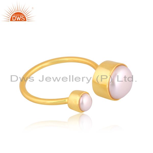 Sterling Silver Ring With Beautiful Pearl Cabochon Stones