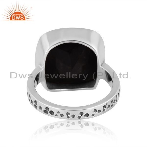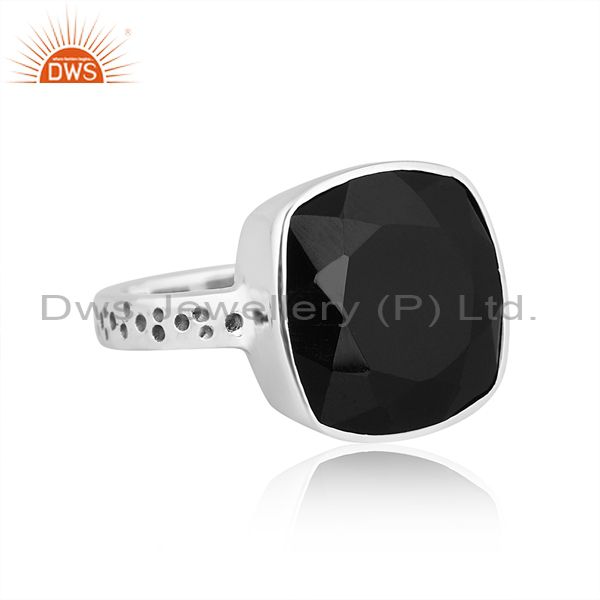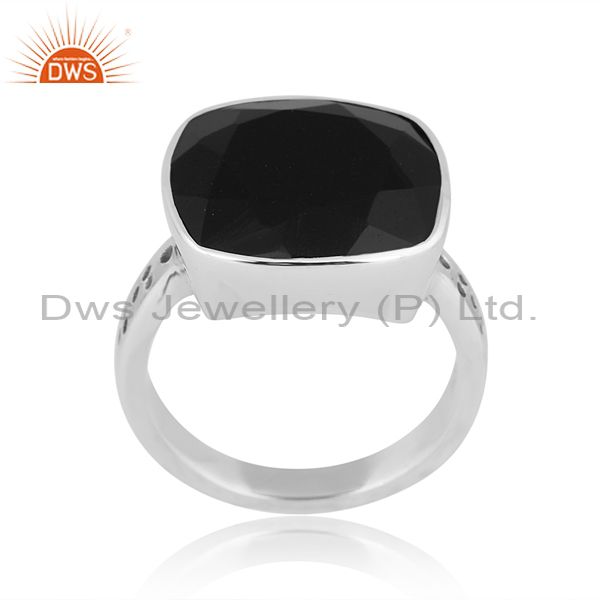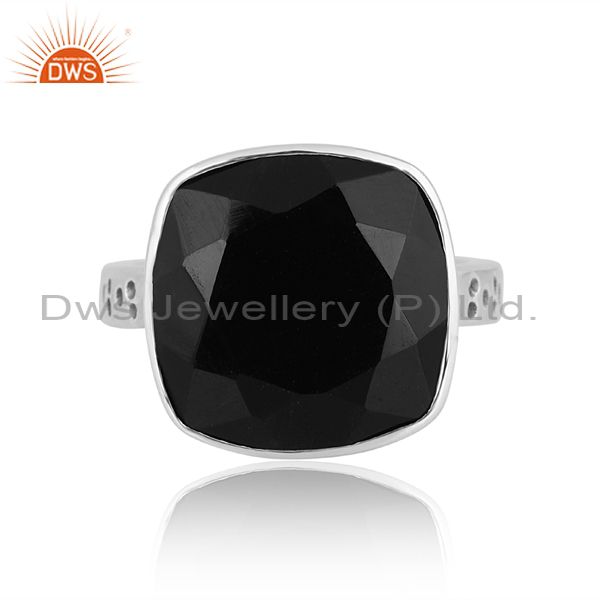 Sterling Silver Ring With Black Onyx Cut Cushion Stone