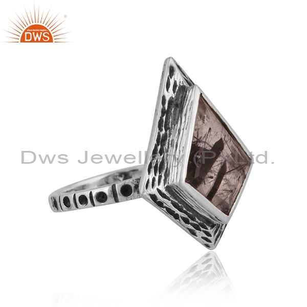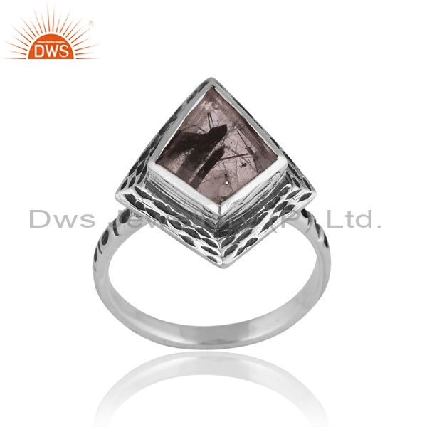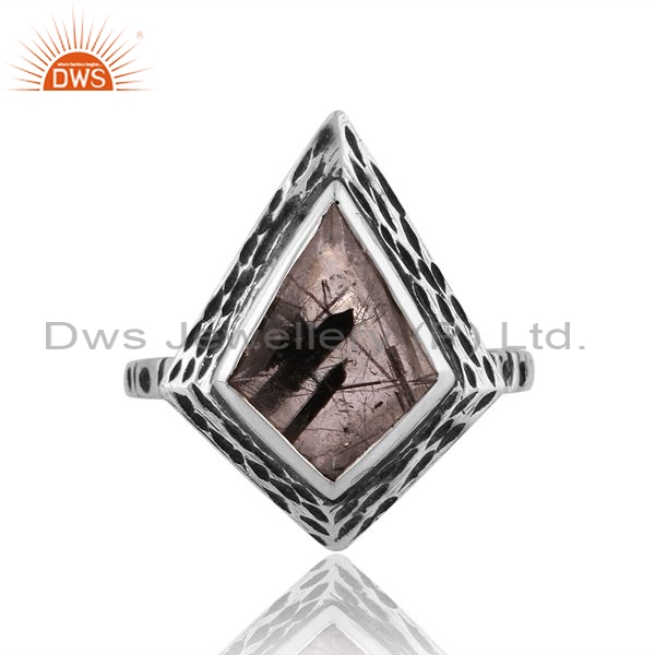 Sterling Silver Ring With Black Rutile Kite Cut