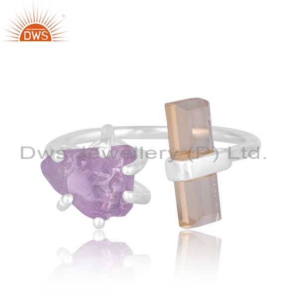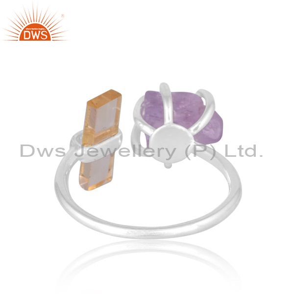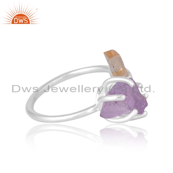 Sterling Silver Ring With Citrine And Pink Amethyst