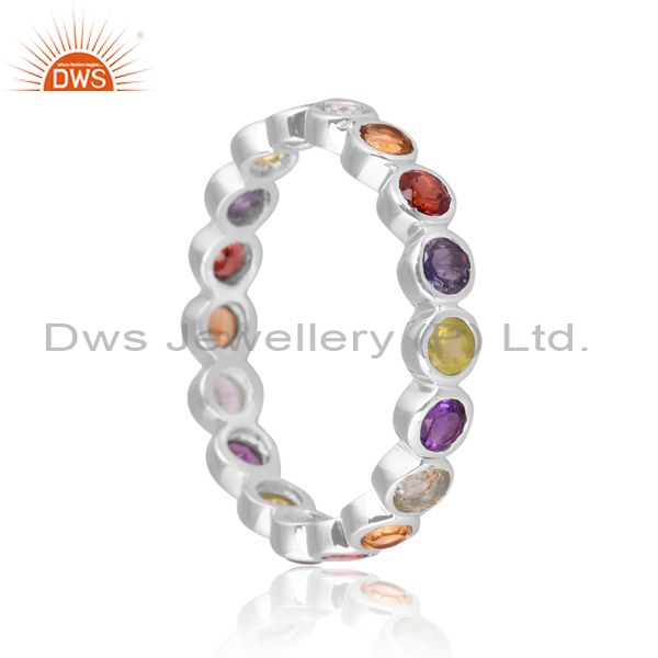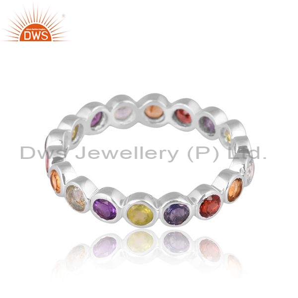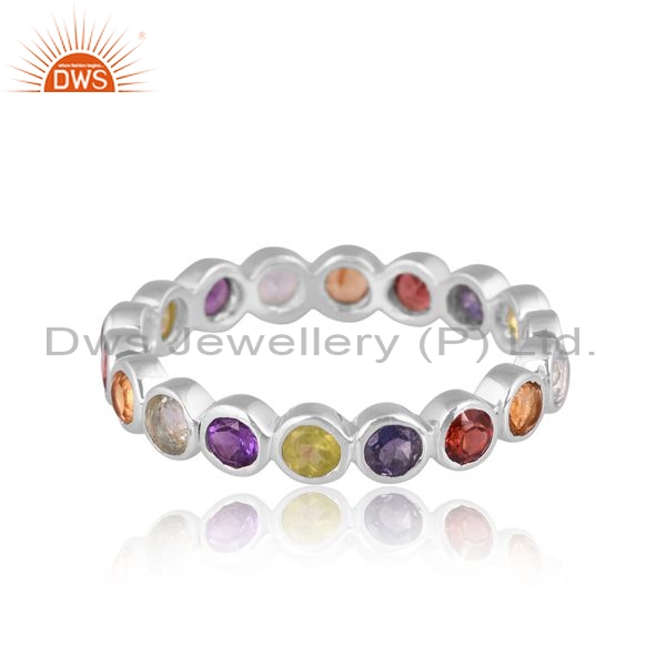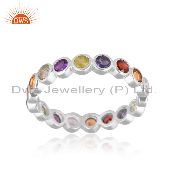 Sterling Silver Ring With Colorful Round Cut Gemstones
