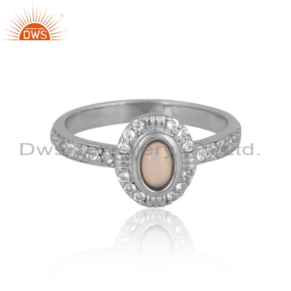 Sterling Silver Ring With Ethiopian And White Topaz Design