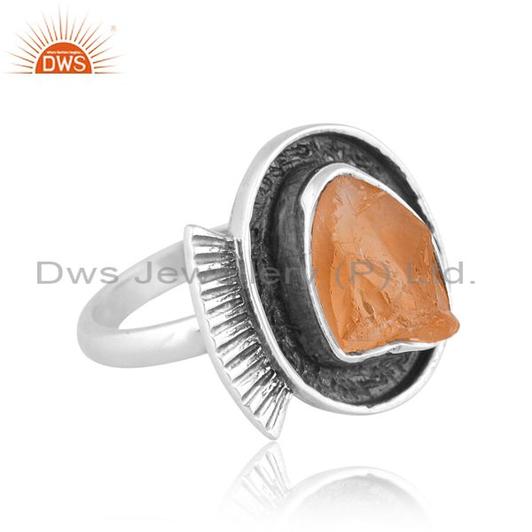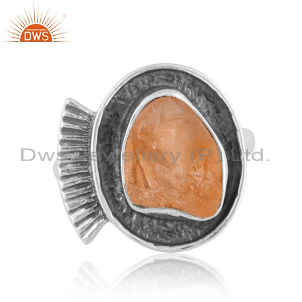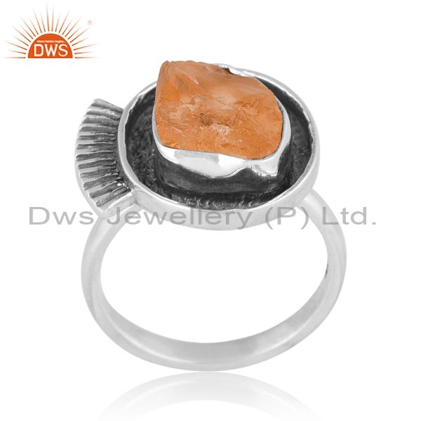 Sterling Silver Ring With Funky Citrine Rough Unshape Stone