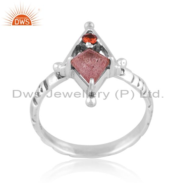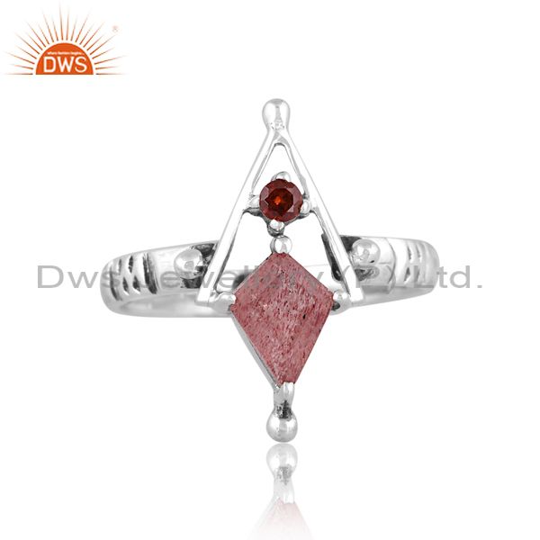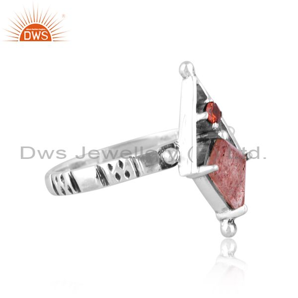 Sterling Silver Ring With Garnet And Strawberry Gemstone