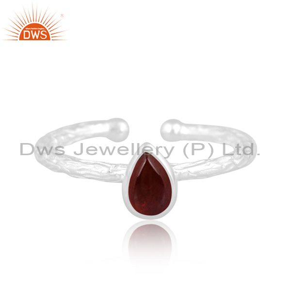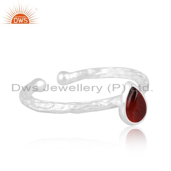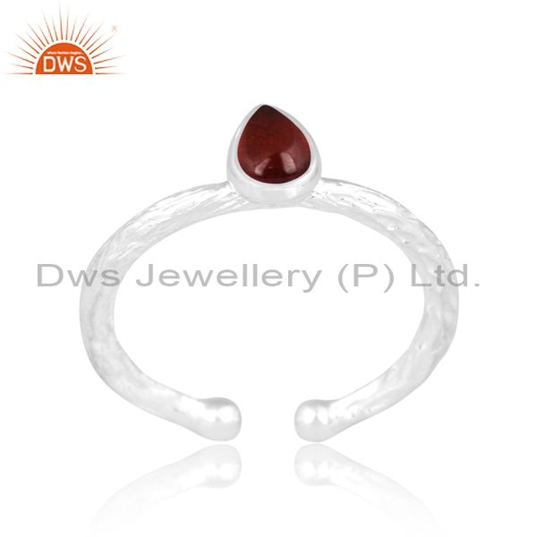 Sterling Silver Ring With Garnet Cabushion Pear Cut Stone
